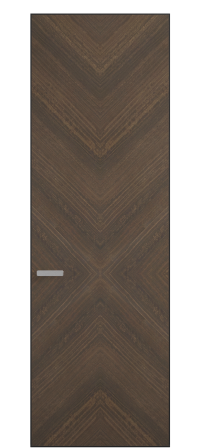 Полотно Rift в скрытом алюминиевом коробе становится полноценным элементом декора. В коллекции представлено 9 моделей дверей в высоте до 3 метров. Рисунок раскладки шпона варьируется от простого до сложного. «Рубашка» для каждого полотна подбирается вручную по цвету, текстуре и фактуре.