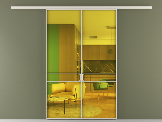 Во всех алюминиевых перегородках, независимо от типа установки, используется компланарный раздвижной механизм, благодаря которому декоративная крышка и полотно находятся в одной плоскости.